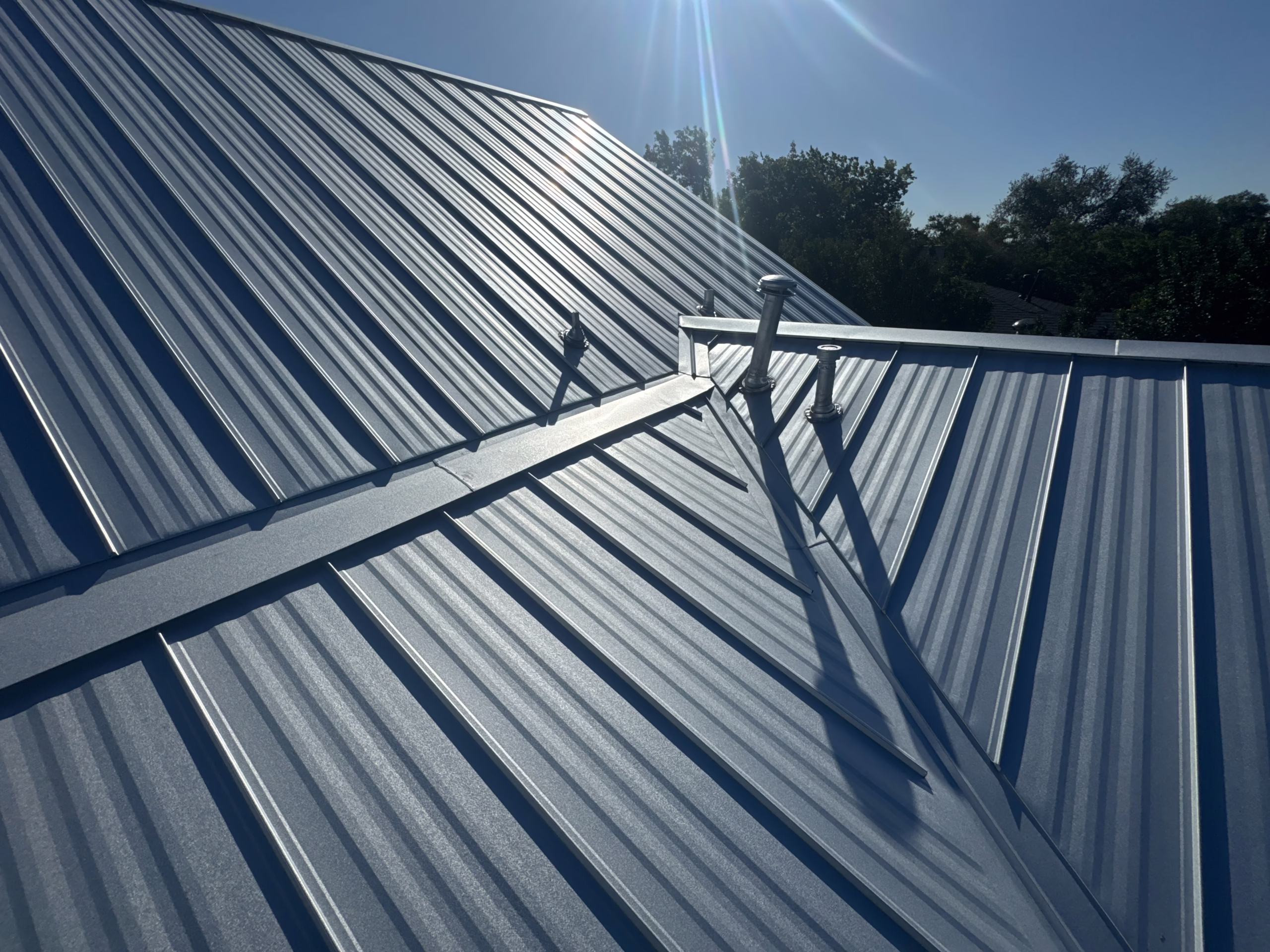 The panel profile also accommodates thermal movement — metal expands and contracts significantly with Texas temperature swings, and a system that doesn’t account for that will develop leaks and distortion regardless of material quality. Standing seam handles this correctly by design.
